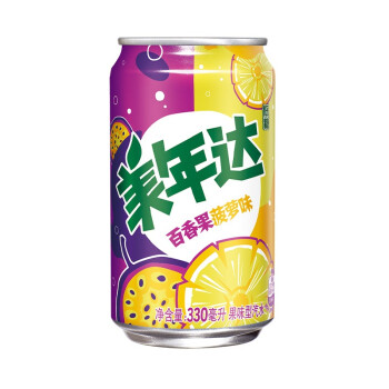 美年达可乐 Mirinda 百香果菠萝味 果味汽水 低糖酸甜 常规罐 碳酸饮料 整箱 330ml*24听(图1)