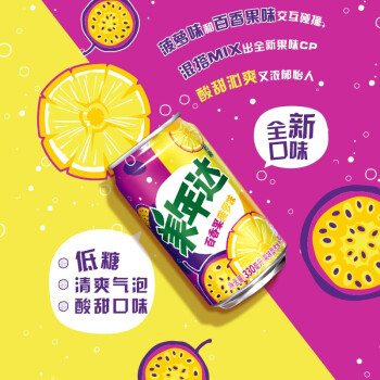 美年达可乐 Mirinda 百香果菠萝味 果味汽水 低糖酸甜 常规罐 碳酸饮料 整箱 330ml*24听(图3)